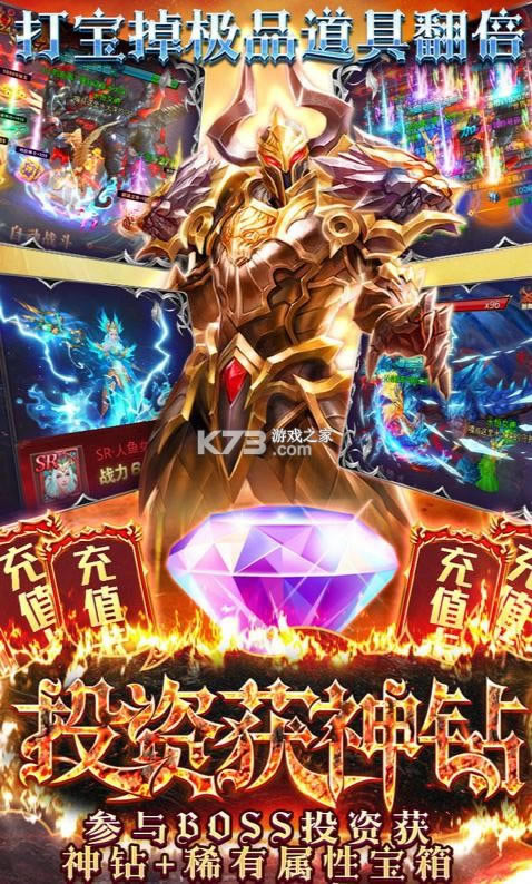3.参与BOOS投资可获得神钻、稀有属性宝箱,并且打宝掉落极品道具几率翻倍