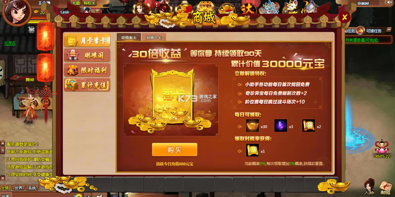 《神仙道》在线充值领取超级多的特权卡,完成当前任务副本,通过充值来领取vip的等级,在沿路上消灭各种妖魔鬼怪,领取小仙灵,快速的升级,自动来领取每月礼包和超级多的奖励,开宝箱领福利。