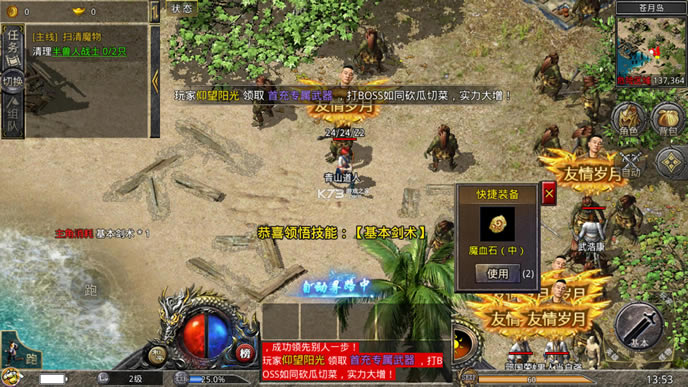 -离线挂机模式设置,自动进行激情打怪升级,获取实力提升,结合战友。
