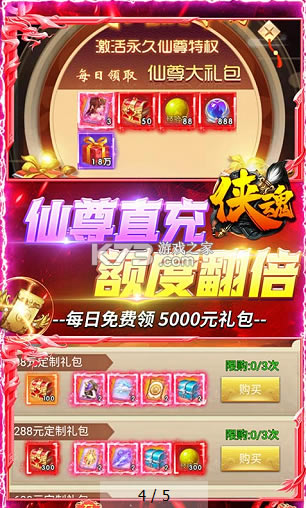 ★全新专属特权:仙尊专属特效称号,提升2000元直充额度,每日免费领取5000元特权专属礼包!
