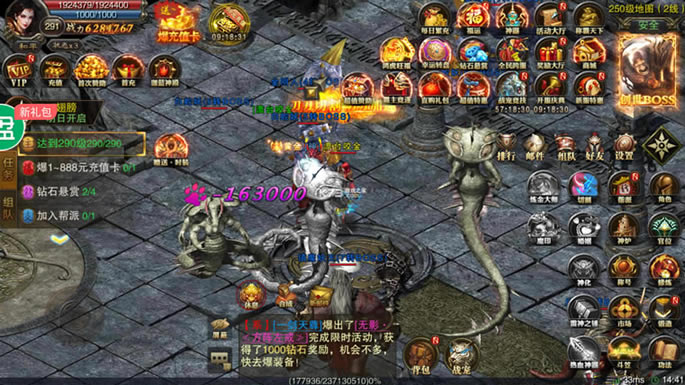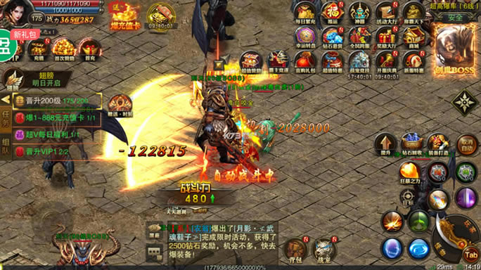 2、上线送超级VIP3、钻石50W、元宝10亿,满级切割,刀刀切割,打怪如切菜