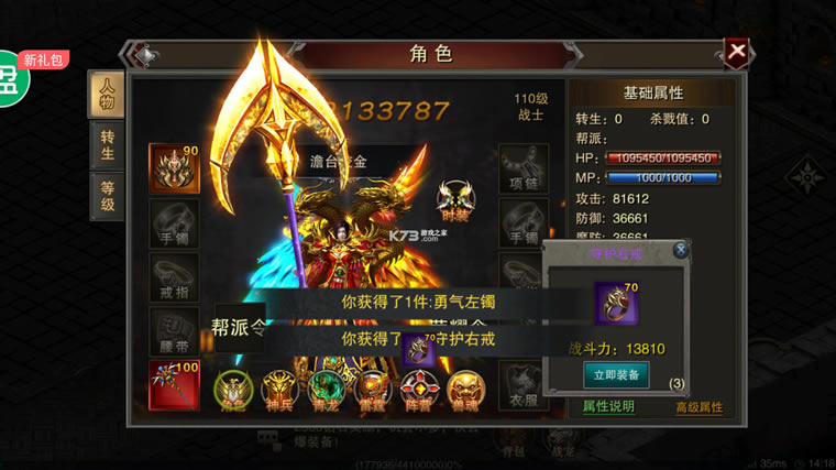 7、特色嗜血时装、龙魂、神龙盾、战刃和战神装备系统,各类稀有属性和压制,满足你的PK欲望