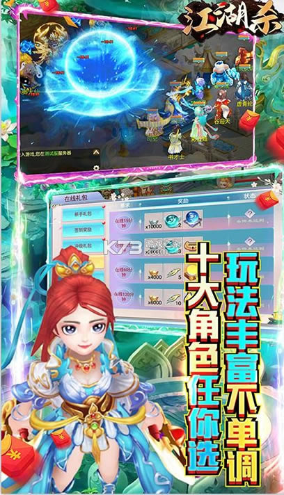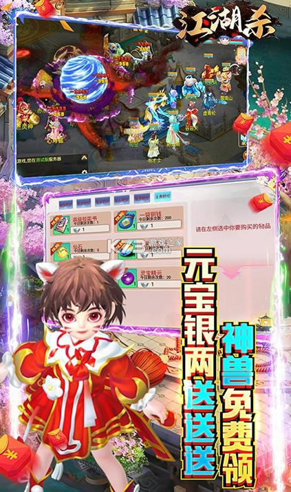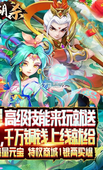 《江湖杀(0氪送神兽)》是一款以大唐为背景的西游回合制手游;来玩上线就送VIP6,神兽麒麟,稀有翅膀,10w银两;VIP每周免费赠送海量元宝,同时在线,活跃人物元宝奖励送送送,包你不花钱一样玩得精彩;