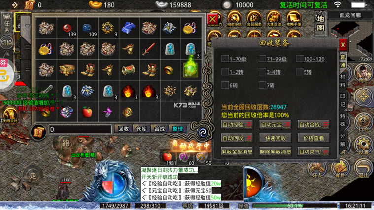 ★免费自动回收特权福利:创角即免费激活自动回收特权,自动经验、自动元宝、自动合成、自动回收