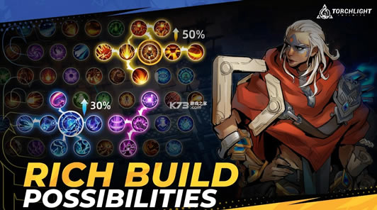 24个天赋板、250多个技能、250多件传奇装备可以组合选择,;