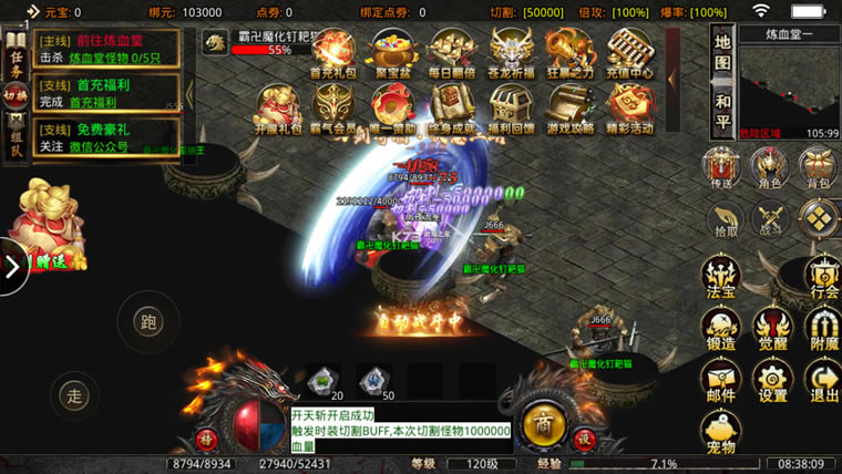 超大的世界地图玩家可以在这里自由的冒险探索,随时随地开始热血的pk战斗,杀人也可以爆装备了。