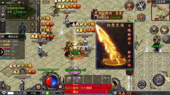支持挂机模式,让你无需耗费时间,就可以获得大量的金币以及经验,快速升级!