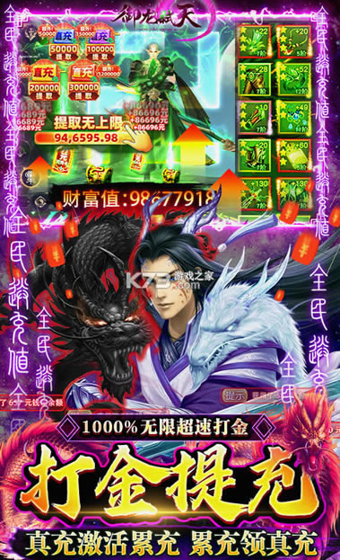 ★1000%超速打金版,全方位免费首充,挂机、boss、活动均产出直充币,瞬间帮你填满直充钱包,永久存入并随时可取出,无上限。