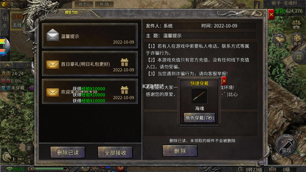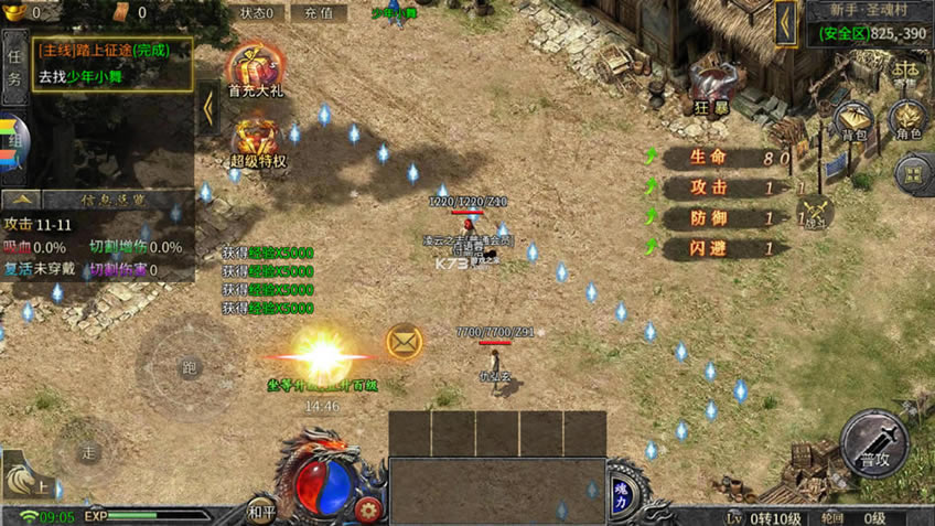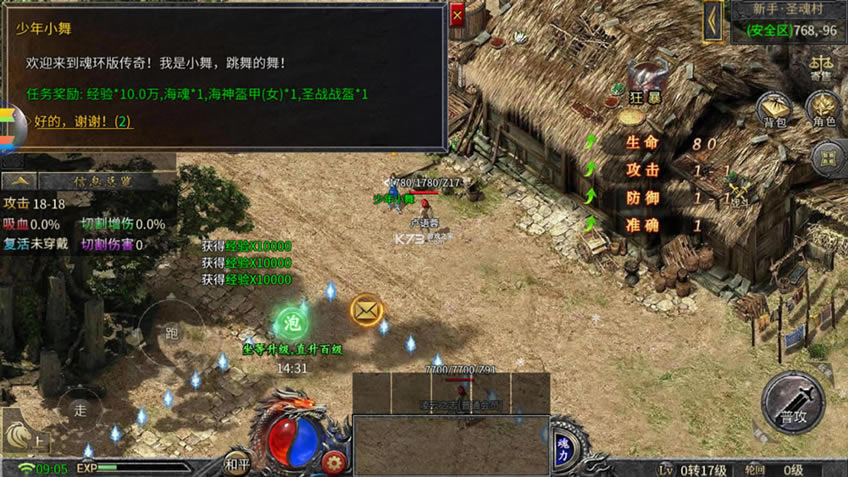 2、玩法很自由,没有时间显示,而且上线就送顶级神装。让你刀刀秒怪。