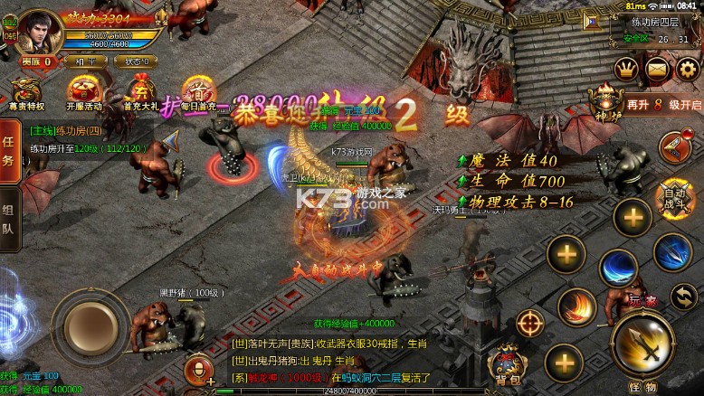 游戏拥有更丰富BOSS活动、酷炫神翼转生、装备高倍爆率、自由回收等开放玩法特点,并创新全能职业将战法道技能合为一体,如此多新体验,打造最受期待热血PK殿堂级手游!