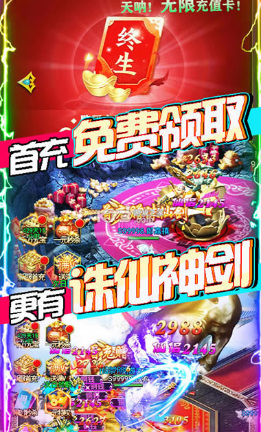 ★首充在线免费领取;更有神剑·诛仙、仙法·九劫天雷、鸿蒙古神等你拿