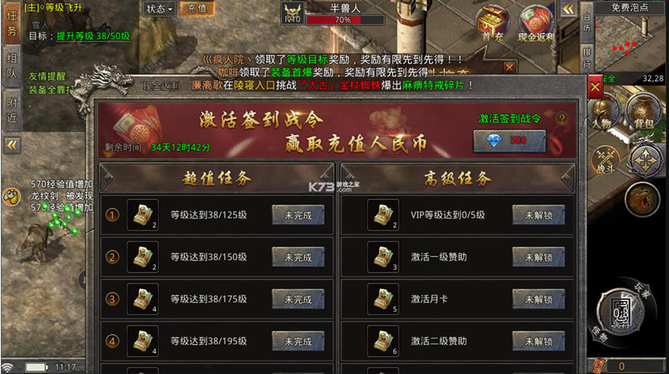 7、进入国战传奇之后,首先要做的就是培养角色升级,玩家可以根据自己的喜好打造自己的战队