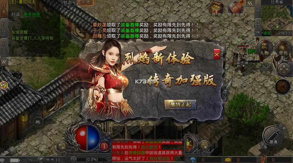 《国战传奇最新版》以非常火爆的火龙传奇版本为基础,结合全新对战竞技国战玩法,而且还为玩家们提供了超高的游戏攻速、高倍爆率等福利,玩家可以单独刷宝爆装备,也能召集伙伴一起热血攻沙得神器。