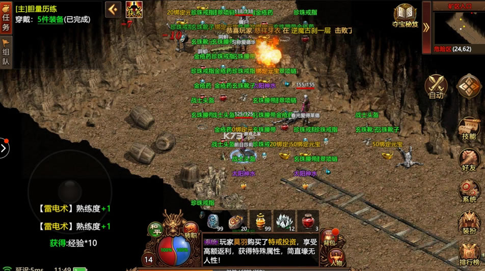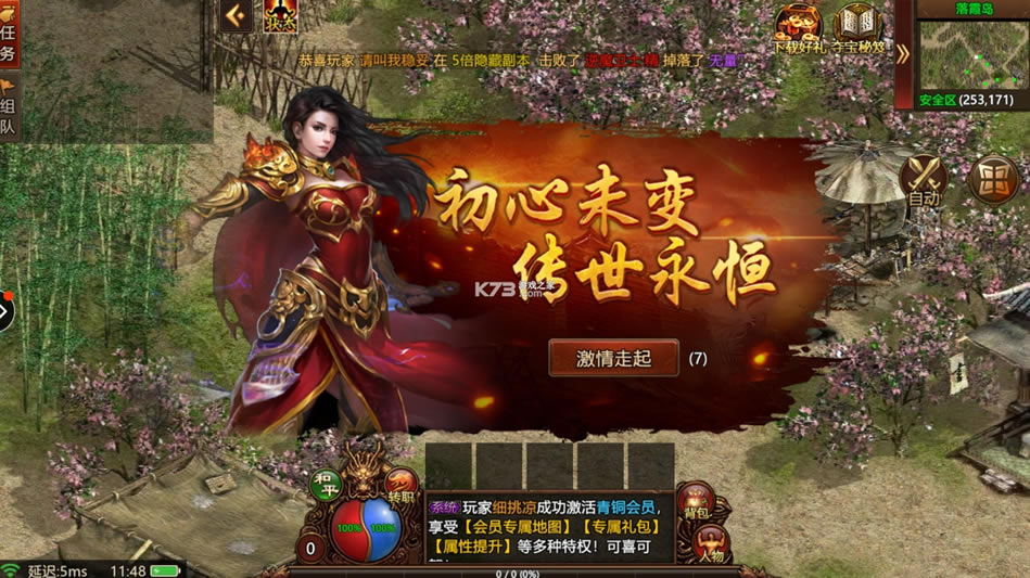 传奇玩法自由体验各种角色,随时召集好友一起组队打怪,闯关拿神装。
