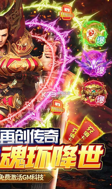 经典传奇,回味无穷!上线送百万元宝,全图爆10w真充卡,每日登录送真充卡,绝对白嫖福利版本、全部免费无限送,极品装备,自由回收,玩家可以把自己爆出来的极品装备放在拍卖行中,可以让自己获得更多的元宝,装备强化和其余属性成长系统(坐骑 、翅膀、元神、成就、灵石、灵兽等系统);