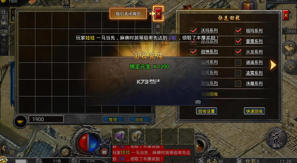 装备可以进行回收,换取元宝和经验,让你的实力提升更加迅速。