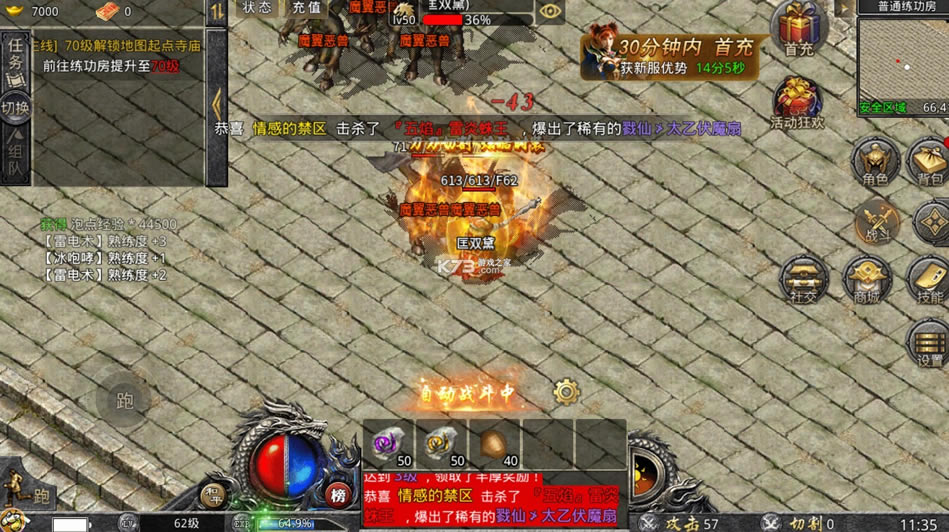 丰富的pk玩法,野外pk爆神装、装备道具交易全自由,寻昔日兄弟,战热血沙城,尽在《怒火一刀》!