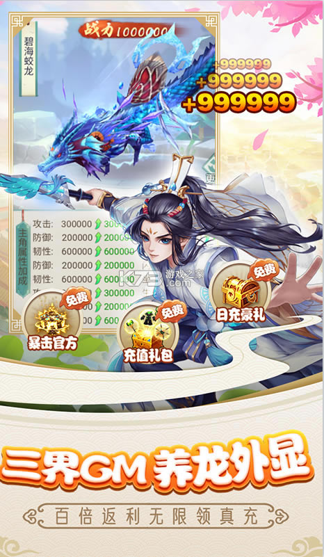 游戏中有着很多飘飘仙子,超级养眼的仙女姐姐将会指引你走上修仙的道路!从一开始的淬体到后面锻炼金身突破常人,最后成功的飞升仙界。一路上你会降妖伏魔获取仙器法宝,现在来玩还有新手大礼包相送哦!