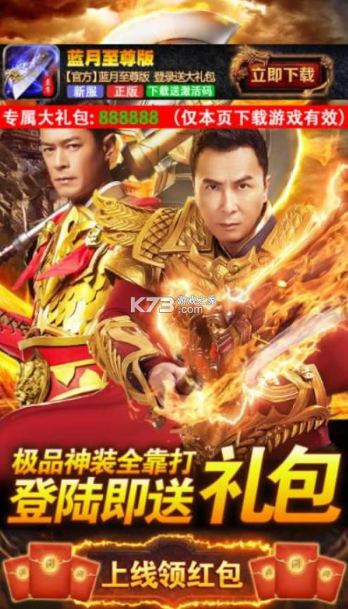《蓝月至尊版甄子丹版》是一款由甄子丹代言的一款传奇游戏,玩家在游戏中将上线就可以领到各种不同的福利,而且还有超高的游戏爆率和炫酷的武器装备,支持武器装备的回收喜欢的小伙伴快来下载体验吧!