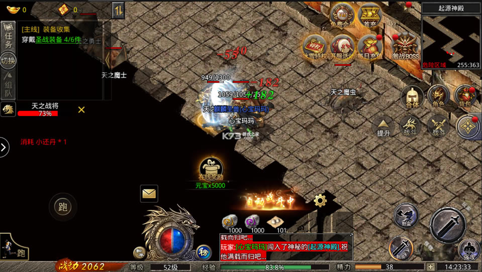 8、大量的复制任务等着你去挑战。战斗的方式多种多样,自由PK,激情杀戮增强实力,获取各种稀有材料