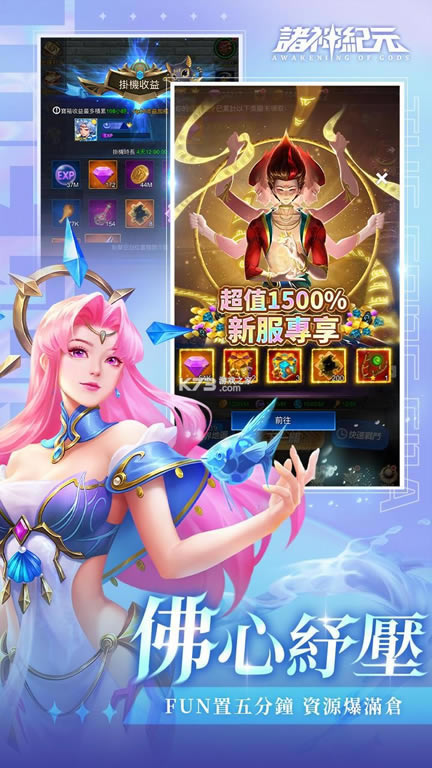 《诸神纪元》是游戏的台服特别版本,你将召集众神之力,拯救被黑暗笼罩的世界。游戏中的众神许多为可爱的美少女,你可以与她们缔结良缘,也可以享受轻松的放置卡牌对战,更能使用华丽的技能进行爽快pk。