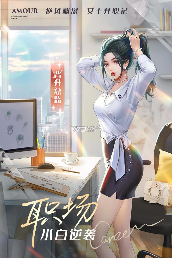 一千克拉女王手游从办公室小白到职场女王!都市少女的逆袭之路!在一千克拉女王游戏里梦想成为珠宝设计师的少女,误打误撞踏入了世界顶级珠宝公司Amour!熠熠生辉的珠宝,追寻梦想的设计师,与命定之人的邂逅……从这一刻起,梦想启程,成为最伟大的珠宝设计师!在一千克拉女王手游中你将化身女主,揭开父辈的生死之谜,化解同事的明争暗斗,在通往梦想的路上,写下自己的故事。交织的命运,跌宕起伏的剧情,欢迎来到《一千克拉女王》的世界。