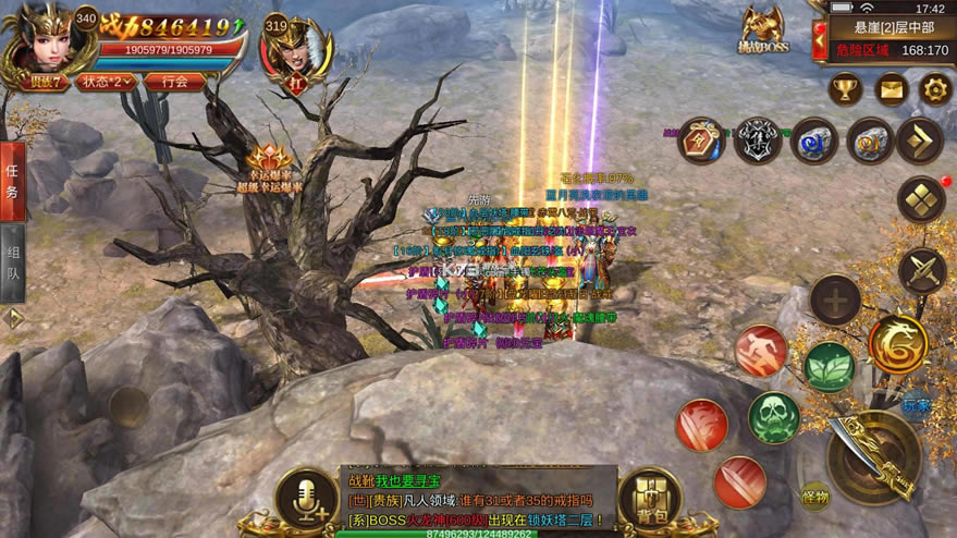 经典战法道组合杀怪PK畅爽战斗,完善的社交系统,让你和兄弟快意恩仇决战龙城,轻松打怪爆装备!
