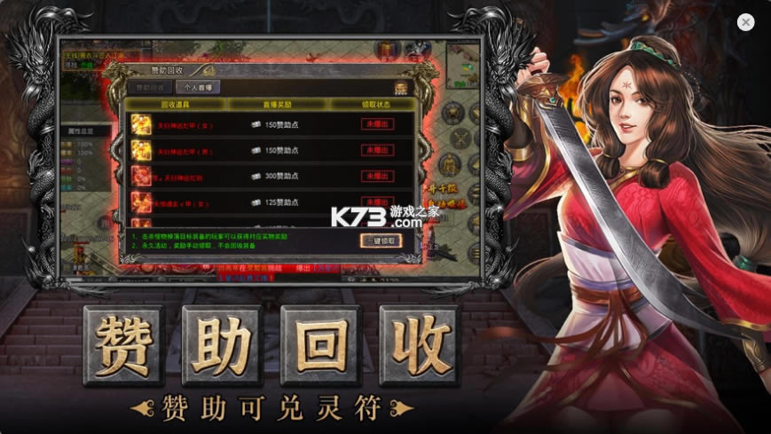 这是一款三职业超变武侠传奇,攻速超快,上线秒升千级,转生称号只需要元宝,不掉落等级,赞助低加成高,技能免费得可打实物回收,剑甲首曝领奖励,最高可得500赞助点。