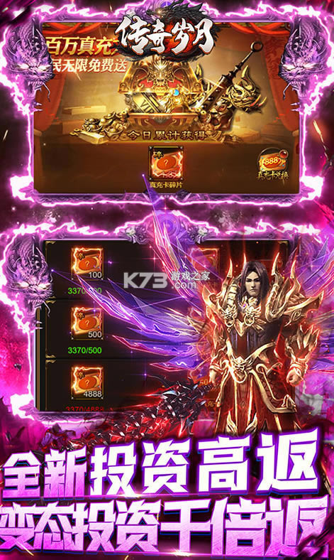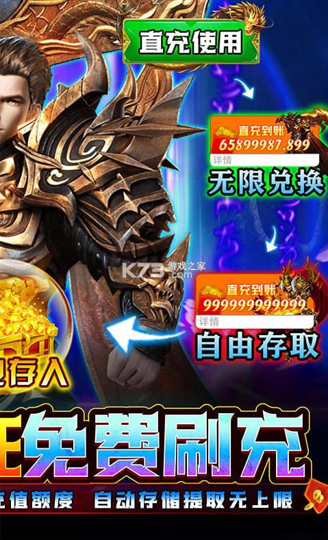 全新终身返利福利,终身每日享受真充福利!更有全新GM指令可以无限获得资源!在线无限抽真充卡,让你抽到爽!丰富的跨服玩法让你体验无限的激情!