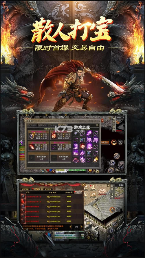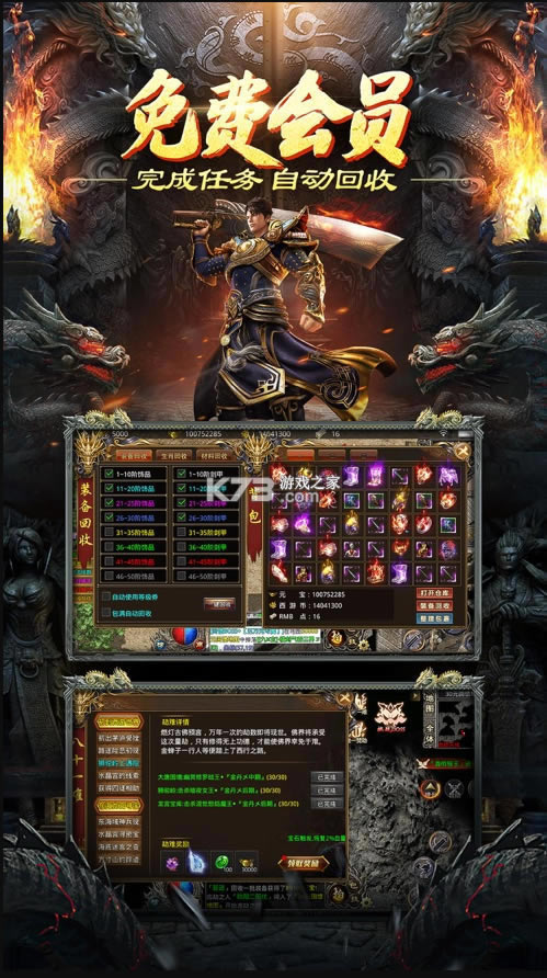 打金玩法,一切配备都能一键回收,高阶配备能够拍卖买卖,爆装爆资料能够直接领取真实充值。