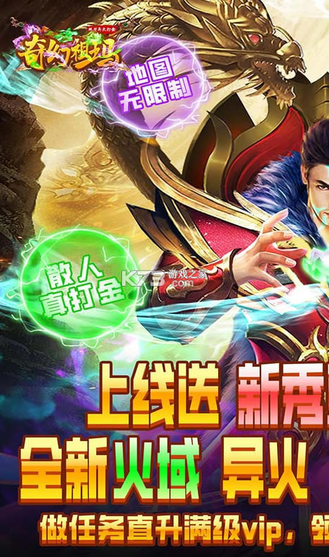 《奇幻祖玛(双刀异火打金)》上线送新秀套装,999金疮药,独创双手武器上线就满级攻速,拒绝付费攻速和蜗牛打怪,真.一秒十刀。地图无限制,完成任务送满级vip,送麻痹特戒,复活特戒。更有全新异火,武魂,魂器,魂环,升级激活武魂真身,带你体验前所未有的传奇时代!