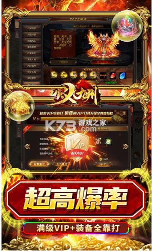 1、满级VIP全靠打,免费满VIP打怪升级享尊贵特权