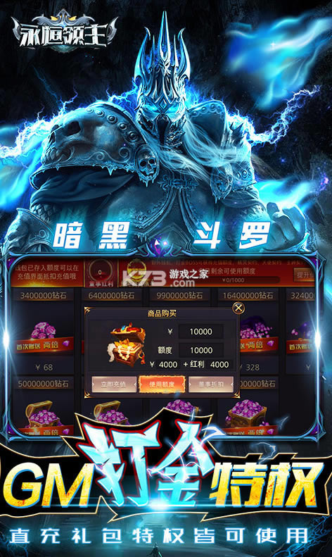 ★全新版本:免费激活GM打金特权,即可获取充值额度,使用充值额度可进行免费钻石直充、免费购买礼包和开启各种特权。打金额度无上限,轻松称霸魔幻大陆。激活主神契约,领8大全满系统。