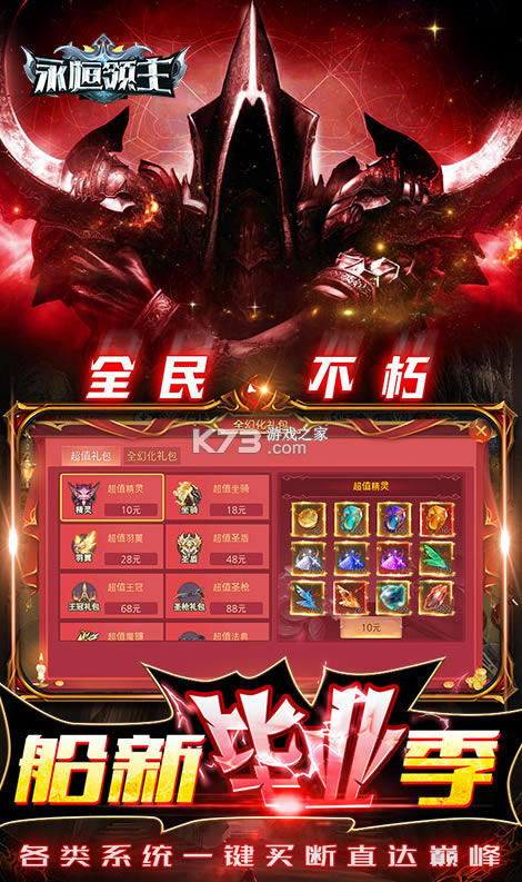 提供了相当丰富的职业类型可以让你们来进行选择,魔幻的战斗场景总是能够吸引玩家们的眼球。在永恒领主游戏当中,多样化的副本关卡让你们可以自由进行挑战,完成一系列任务之后就能轻松获取各种强有力的武器装备快速提升角色战斗力。