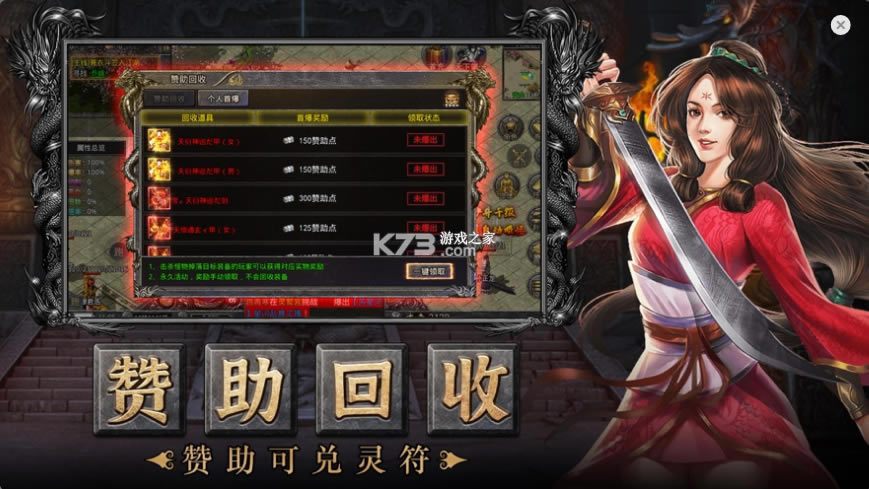 专为广大喜爱玩传奇类游戏的玩家打造的魔幻手游,这款游戏有着最为丰富的游戏玩法,经典的传奇游戏模式可以选择,装备直接用元宝进行回收,直接到账,让您轻松的畅玩传奇手游!