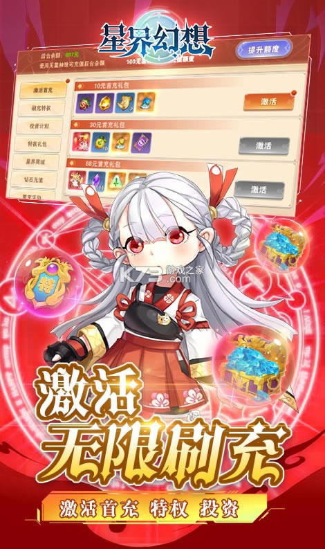 《星界幻想》送万元充值卡,无限刷后台,最高可领取500万的神珠,领取道具奖励,所有的商品都1钻石,深度的体验全新的需求,萌新大佬都能玩,选择职业和技能开启灵活的搭配,全过程都很出色。