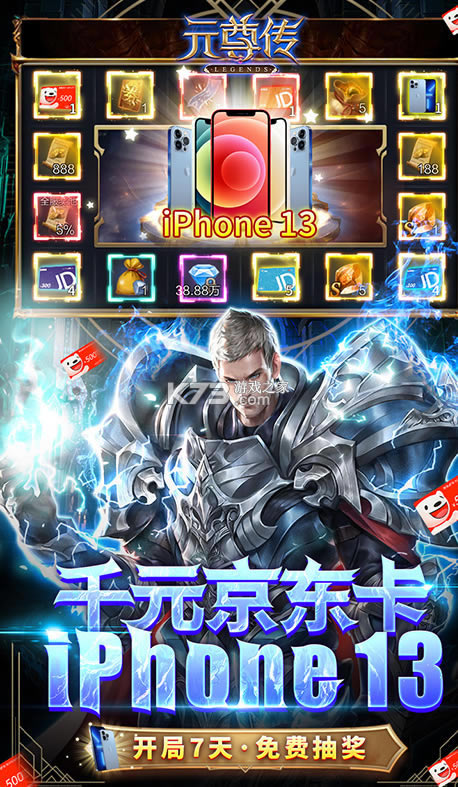 ★后缀说明:开服前七天有限时精彩活动,通过每天免费获取抽奖在转盘抽奖,有几率抽取大奖苹果 13,更有京东卡等奖品
