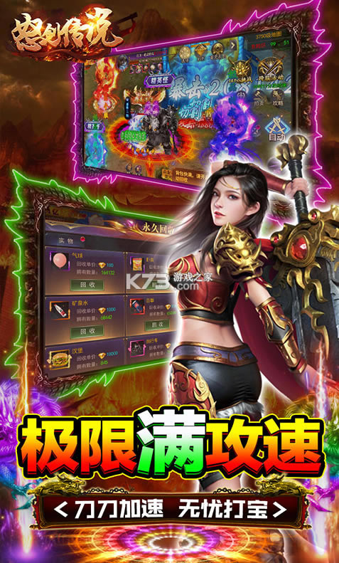 《怒剑传说》大型多人在线的游戏,快速的组队与boss来战斗,极限满攻速,万物皆可爆福利无限,全民跨服战斗福利无限,刀刀加速无忧打宝,百倍爆率无限爆充,给你全新的传奇体验,轻松成为亿元户。