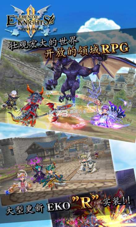 《元素骑士R》(Elemental Knights R)将是一款3D在线RPG游戏,整体画风采用传统激萌日系风格,游戏一开始玩家可以选择并自定义四种职业:战士、盗贼、牧师和法师,组成4 人小队出发冒险。
