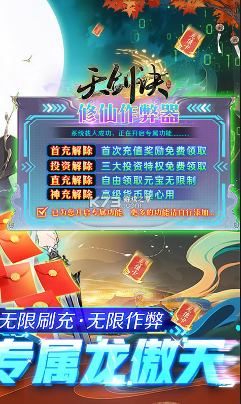 ★后缀说明:升级即送百万充值卡,开局就送修仙作弊器,免费直充,神充,投资返利等等功能全部开放,让你不再受资源限制