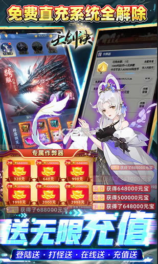 ★【作弊修仙】:上线即送作弊神器,投资返利、免费直充、免费神充等等系统皆数解除,资源无限,奖励无限,从此修仙不再平凡