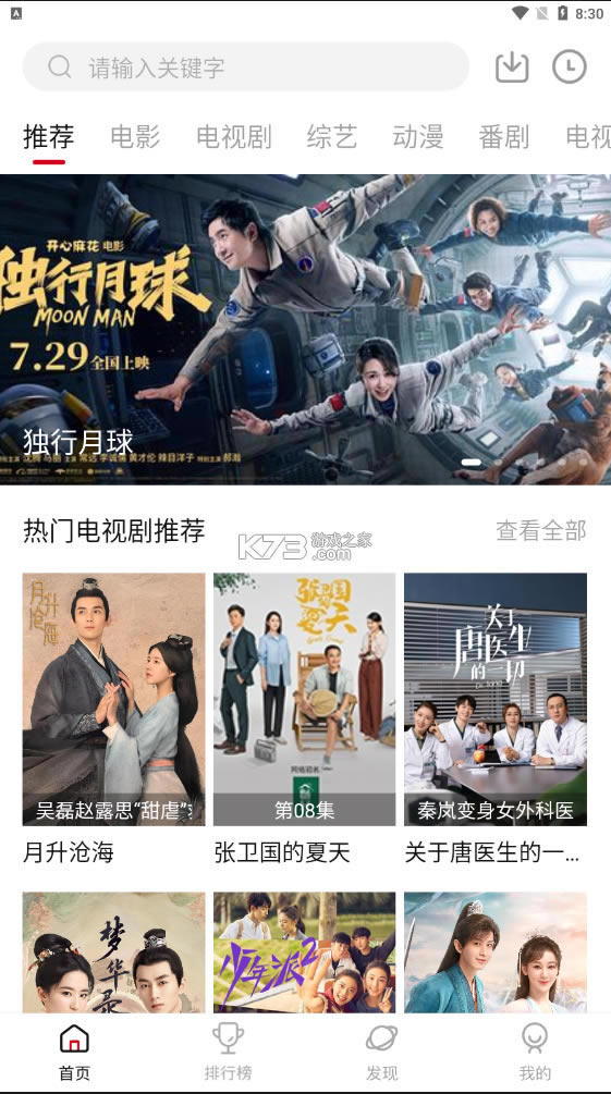 2、界面简洁,主界面的各种最新影视推荐,让你轻松找到新剧热剧,没有任何的广告。