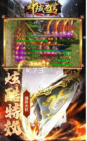 《神域苍穹》拥有最炫酷的游戏装备,高级爆装极限领攻速,刀刀爆装福利无限,体验极佳的传奇游戏,唯美的时装极致的盛宴,刀刀暴击超多的地图一路横行,高级装备全靠爆,满屏光柱自动回收。