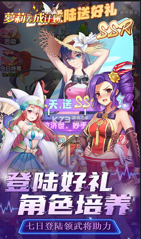 《萝莉养成计划》登录领豪礼天下无双,领取SSR伙伴七日福利不断,挂机就领收益,日式各种武将都幻化成各种美少女,互动养成开启战斗冒险的结合,多位萌娘们开启阵容的搭配,带来全新的放置玩法,一起来开启畅玩。