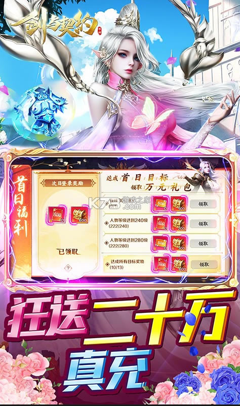 ★主界面右上角首日福利,完成目标领取6万元真充卡,总共20万元真充卡。