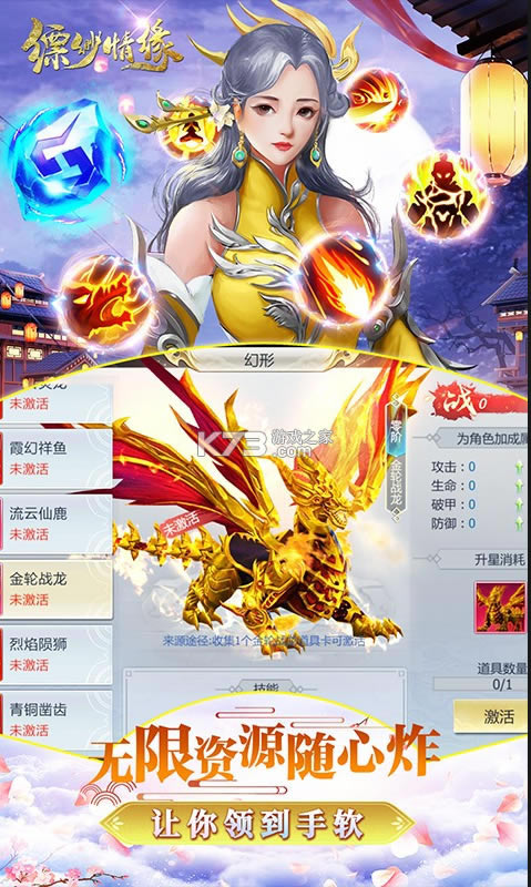 更有变化万千的妖灵宠物,炫丽夺目的精美时装,自由无限制的交易市场,经典仙侠动作,加入众多玩法,包括装备强化、符文系统、法宝神兵等玩法,颠覆单一的仙侠游戏玩法。