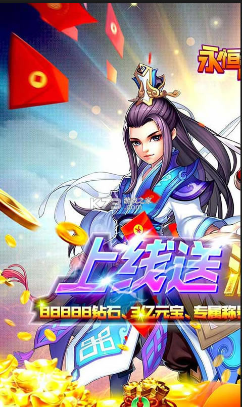 ★上线送满VIP,88888钻石,3亿元宝,专属定制称号,武将碎片*100,挖宝钥匙*50