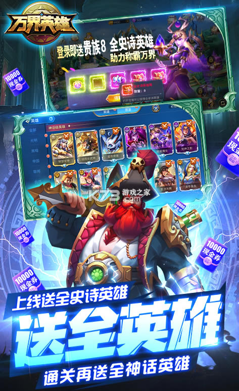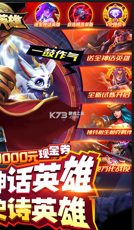 ★【全民狂欢】:通关章节送全神话英雄,挑战梦魇魔塔再送10000现金卡