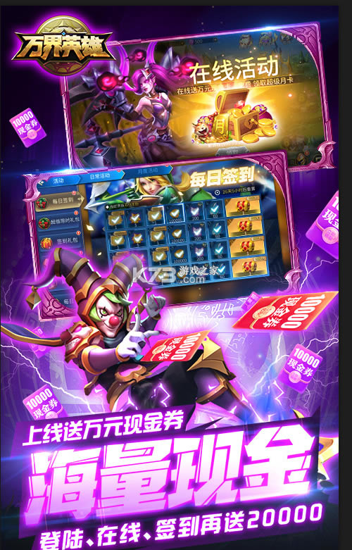 ★【连续福利】:七天登录送6000元现金卡、神话英雄和各种材料,还有签到每月送3300元现金卡。(现金卡还可激活累充活动)