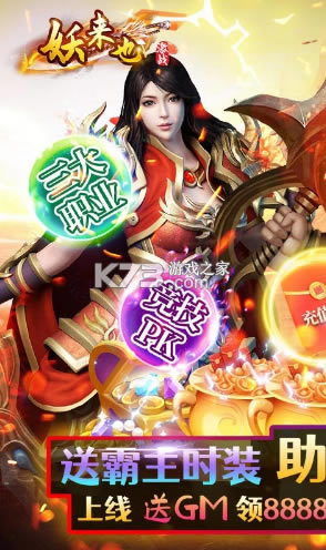 《妖来也(GM巅峰霸主)》是一款画风新颖的传奇手游,游戏继承传奇的核心玩法。不仅如此,还独创了全新玩法,三个职业可一同作战激战BOSS,打不尽的BOSS副本,领不完的福利道具。丰富的游戏剧情,不一样的闯关玩法!超强神兵,炫酷时装应有尽有,玩法更加丰富,还能与玩家同台竞技,更加热血劲爆。你还在等什么?快来一起与昔日兄弟齐聚沙城,称霸全服吧!